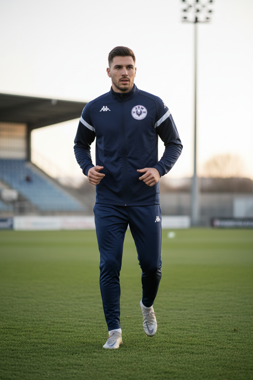 - Ensemble veste zippée et pantalon bleu marine avec détails blancs