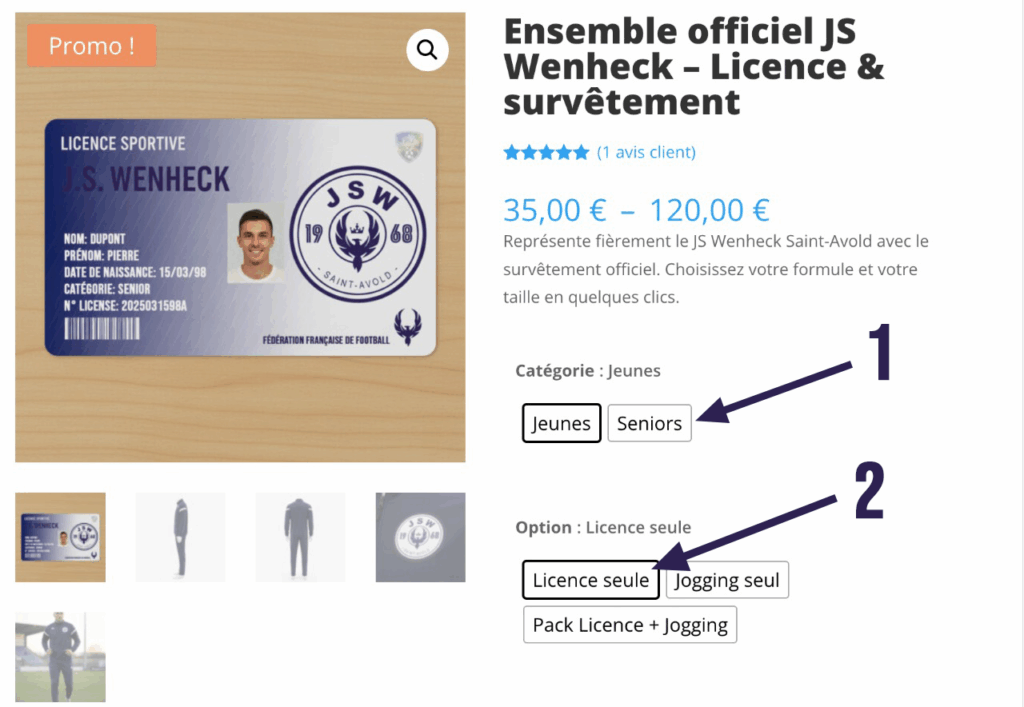 Étape 3 : Sélectionne ton option → Licence seule ou Pack Licence + Jogging pour bénéficier d’une réduction sur l’équipement.